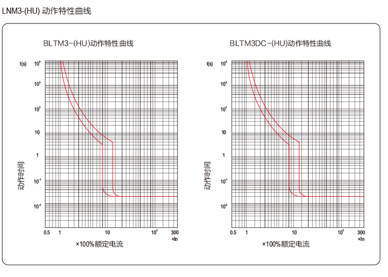 - LNM3-(HU) 系列塑壳断路器 AC800V 电压下分断能力高达 30kA,能可靠实现系统短路保护。