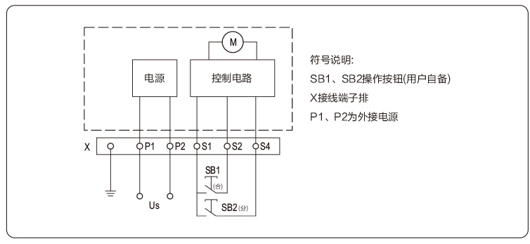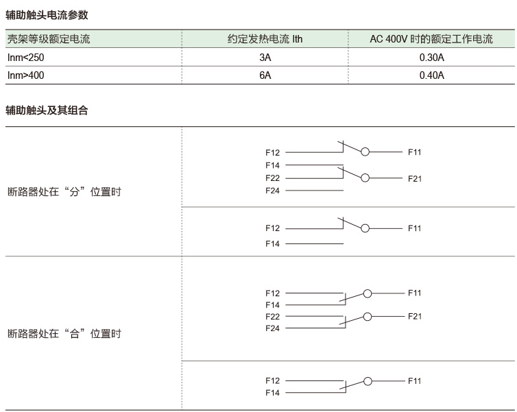 K:分励脱扣器内部与线圈串联的微型开关,为常闭触头,当断路器分闸后,该触头自行断开,合闸时闭合。